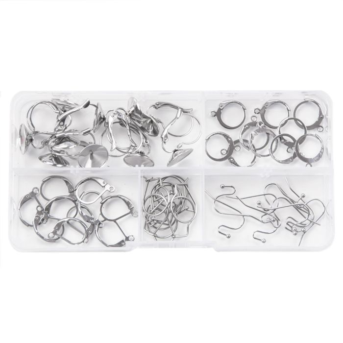 Assortiment - Boucles d'Oreilles Acier Inoxydable (5 types différents) Argent Antique