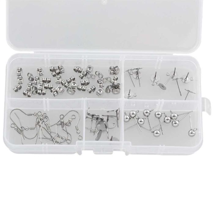Assortiment - Clous d'Oreilles Acier Inoxydable avec Fermoirs (5 formes différents) Argent Antique