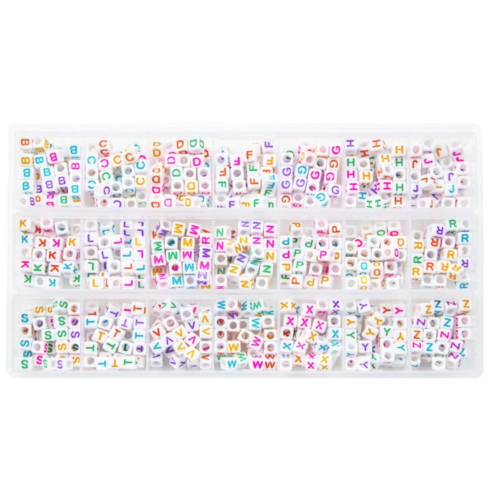Assortiment - Perles Lettres Alphabet Consonnes Grand Trou (6 x 6 mm) White-Mix Color (35 perles par lettre)