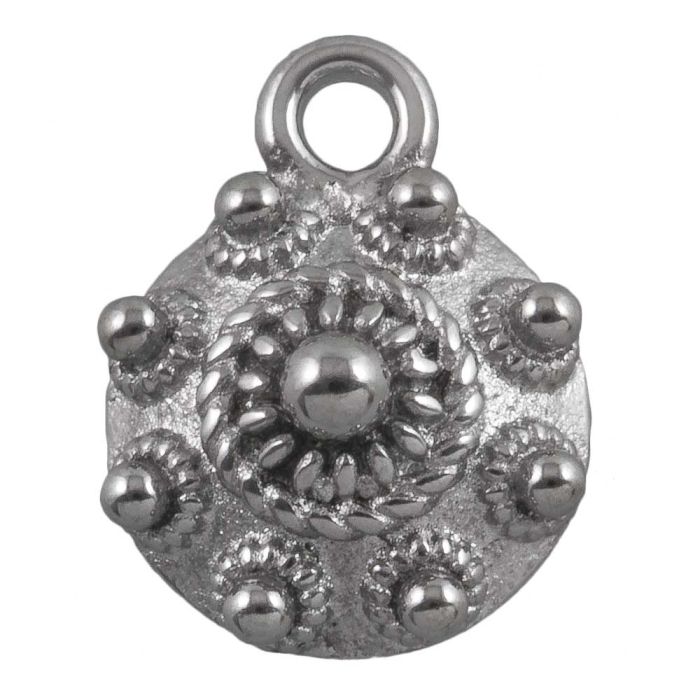 Breloque Acier Inoxydable Bouton Zélandais (17 x 13.5 x 5.5 mm) Argent Antique (1 pièce)