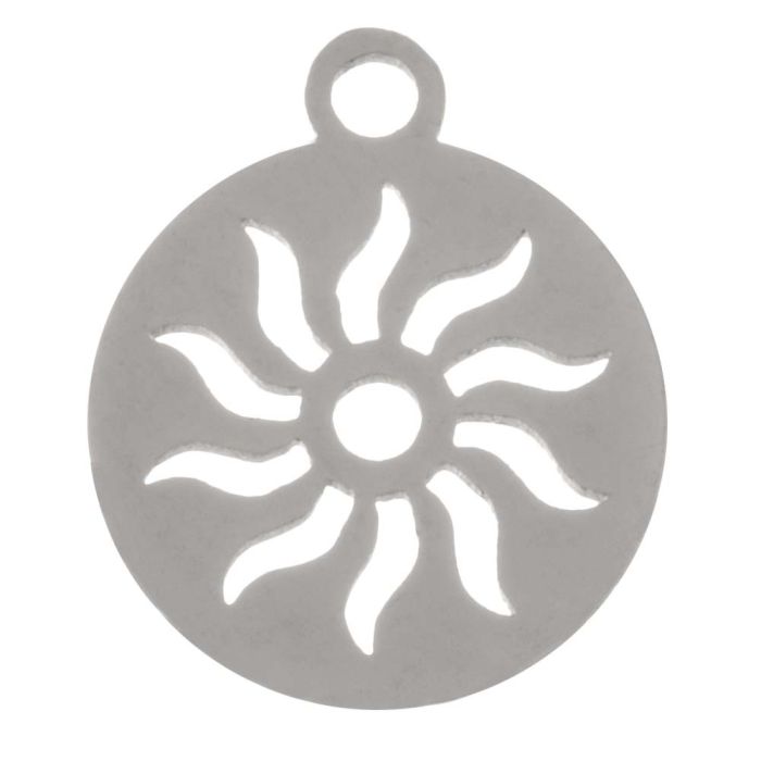 Breloque Acier Inoxydable Soleil (14 x 12 x 1 mm) Argent Antique (2 pièces)