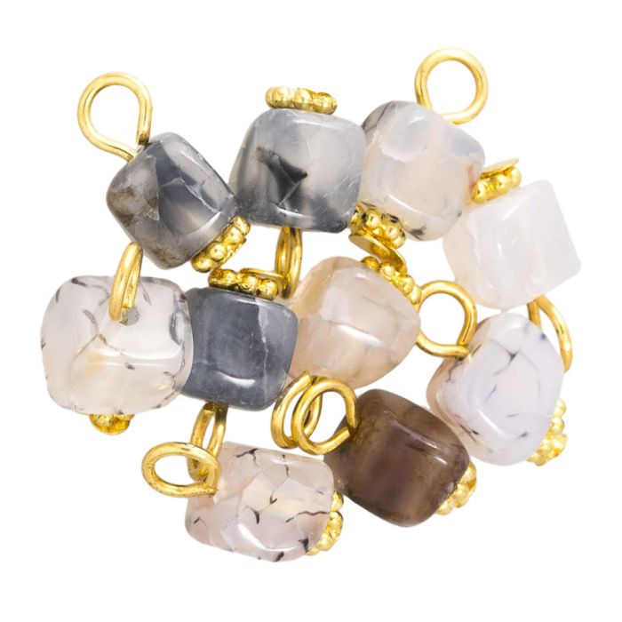 Breloque Agate Gris Fumé Cube (14 - 16 x 7 - 8 x 6 - 7.5 mm) Or (10 pièces)