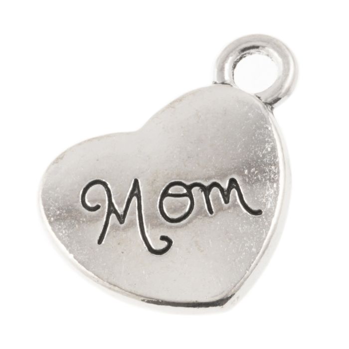Breloque Coeur Mom (18 x 14 mm) Argent Antique (10 pièces)