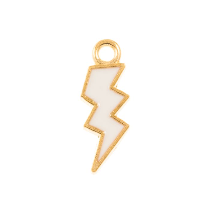 Breloque Émaillée Éclair (20 x 7 x 1.5 mm) White-Or (5 pièces)