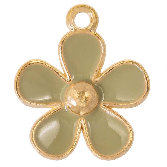 Breloque Émaillée Fleur (21 x 18 x 3 mm) Moss Green (5 pièces)