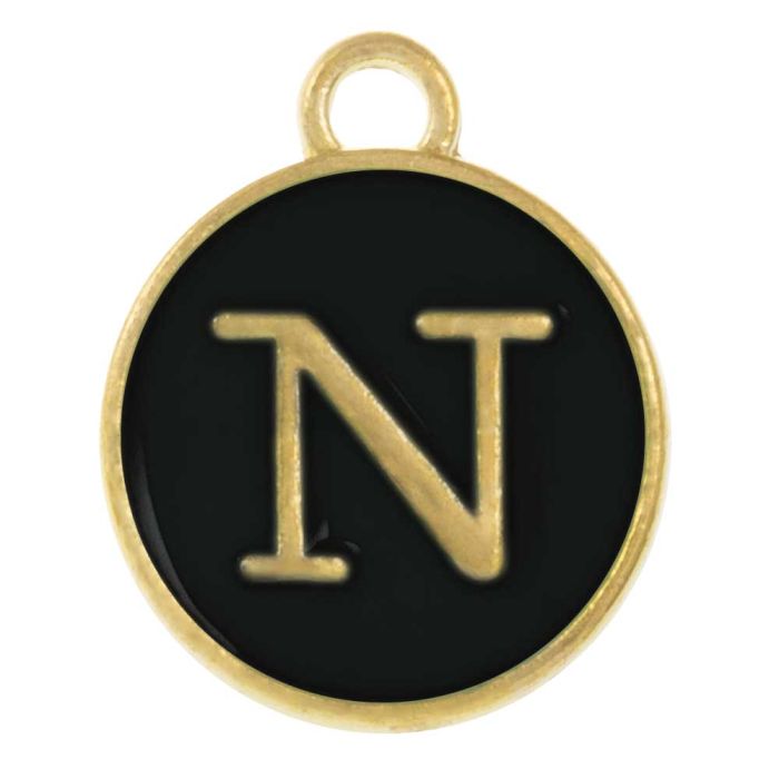 Breloque Lettre Alphabet N Émaillée (14 x 12 x 2 mm) Black (1 pièce)