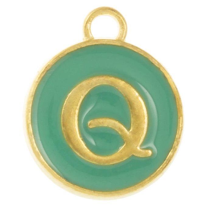 Breloque Lettre Alphabet Q Émaillée (14 x 12 x 2 mm) Turquoise (1 pièce)
