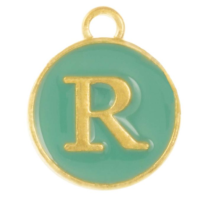 Breloque Lettre Alphabet R Émaillée (14 x 12 x 2 mm) Turquoise (1 pièce)