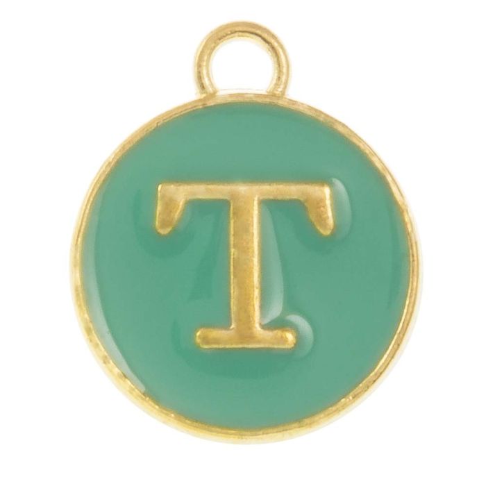 Breloque Lettre Alphabet T Émaillée (14 x 12 x 2 mm) Turquoise (1 pièce)