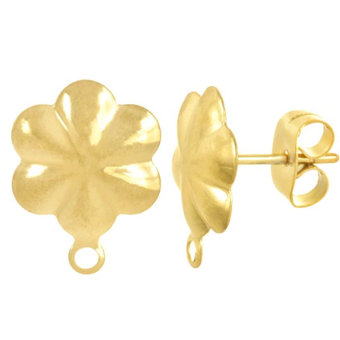 Clous d'Oreilles Acier Inoxydable Fleur avec Fermoir (13.5 x 10 mm) Or (4 pièces)