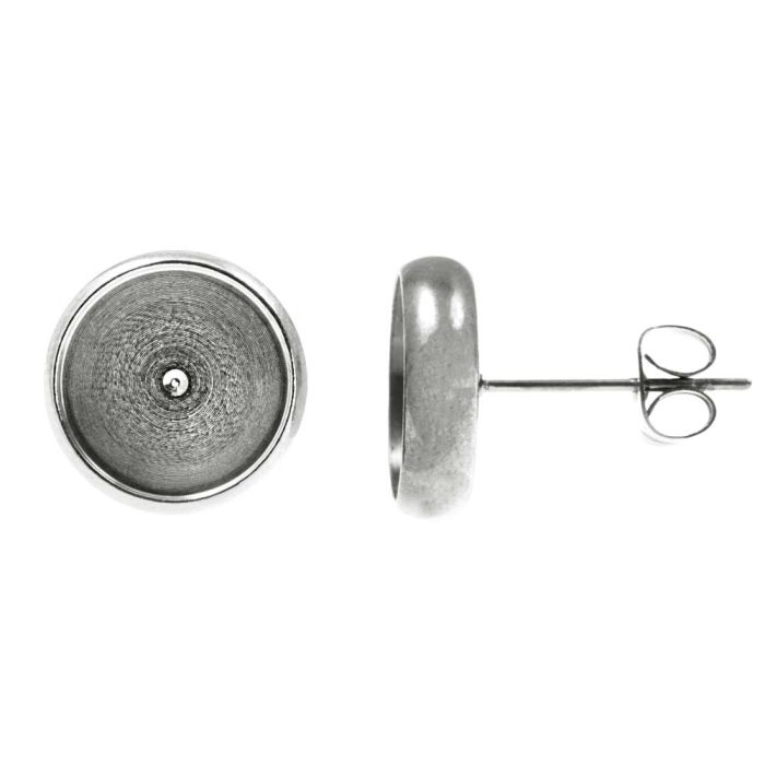 Clous d'Oreilles / Serti Acier Inoxydable avec Fermoir (12 mm) Argent Antique (4 pièces)