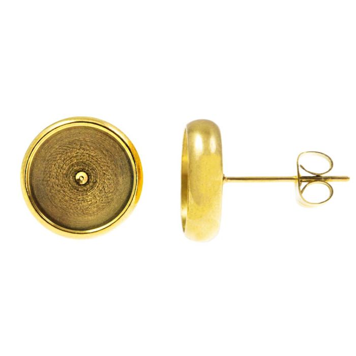 Clous d'Oreilles / Serti Acier Inoxydable avec Fermoir (12 mm) Or (4 pièces)