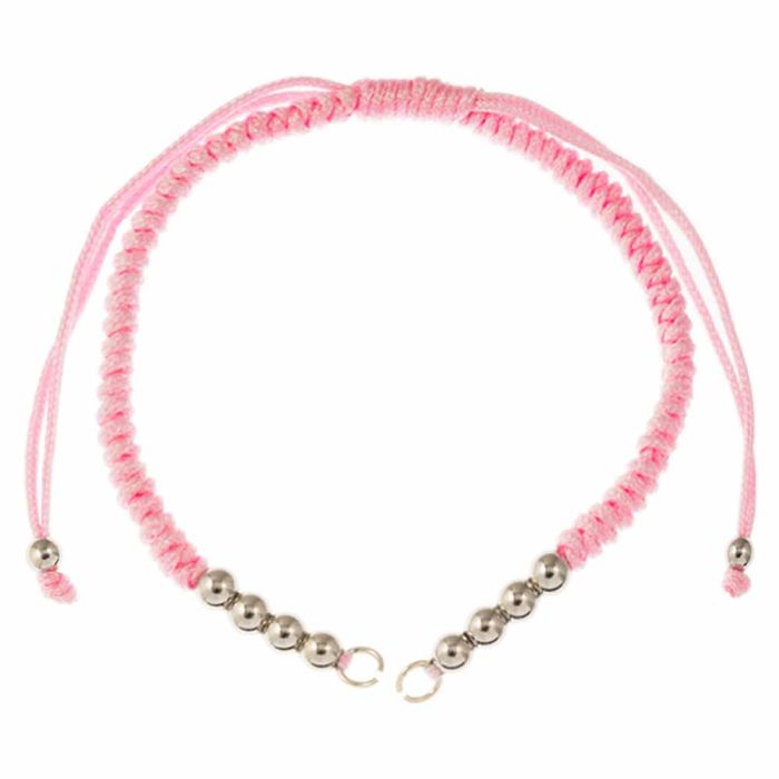 DIY Bracelet - Cordon Nylon Tressé avec Perles Métal Réglable (26 cm) Pink - Argent Antique (1pièce)