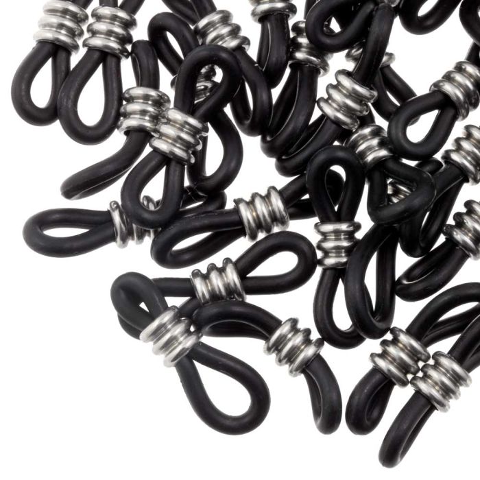 Élastiques pour Lunettes avec Acier Inoxydable ( 20 x 6 mm) Black - Argent Antique (25 pièces)
