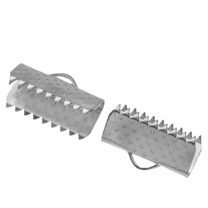 Embout Ruban en Acier Inoxydable (7.5 x 13 mm) Argent Antique (20 pièces)