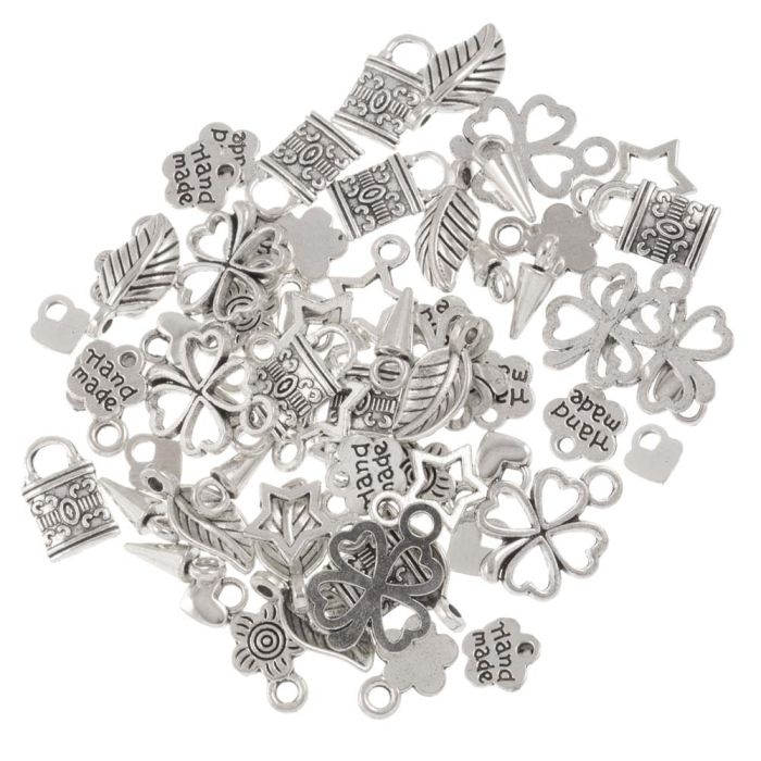 Mélange de Breloques (7 - 16.5 x 6 - 13 mm) Argent Antique (64 pièces)