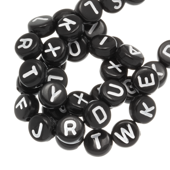 Mélange de Perles Lettres Alphabet Complet Acryliques (7 x 4 mm) Black-White (26 x 5 lettres)