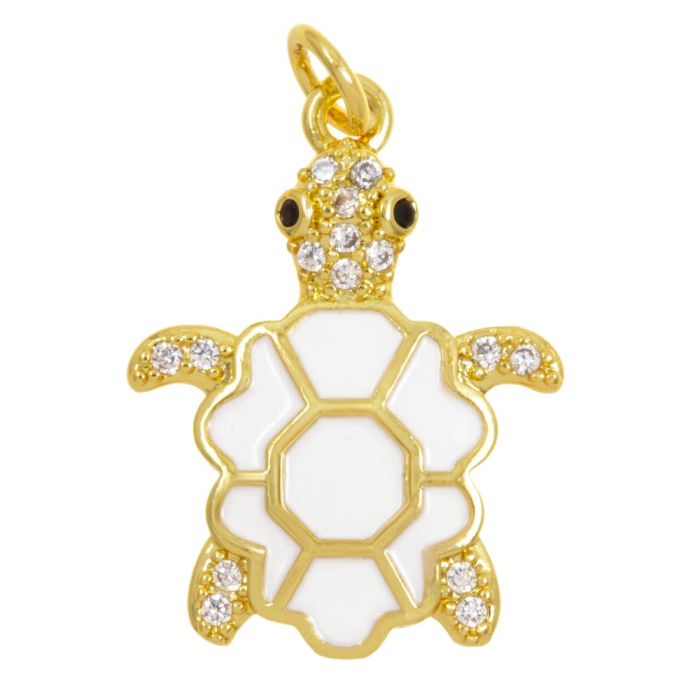 Pendentif Émail Tortue (22.5 x 17 x 3 mm) White -18K Gold Plated (1 pièces)