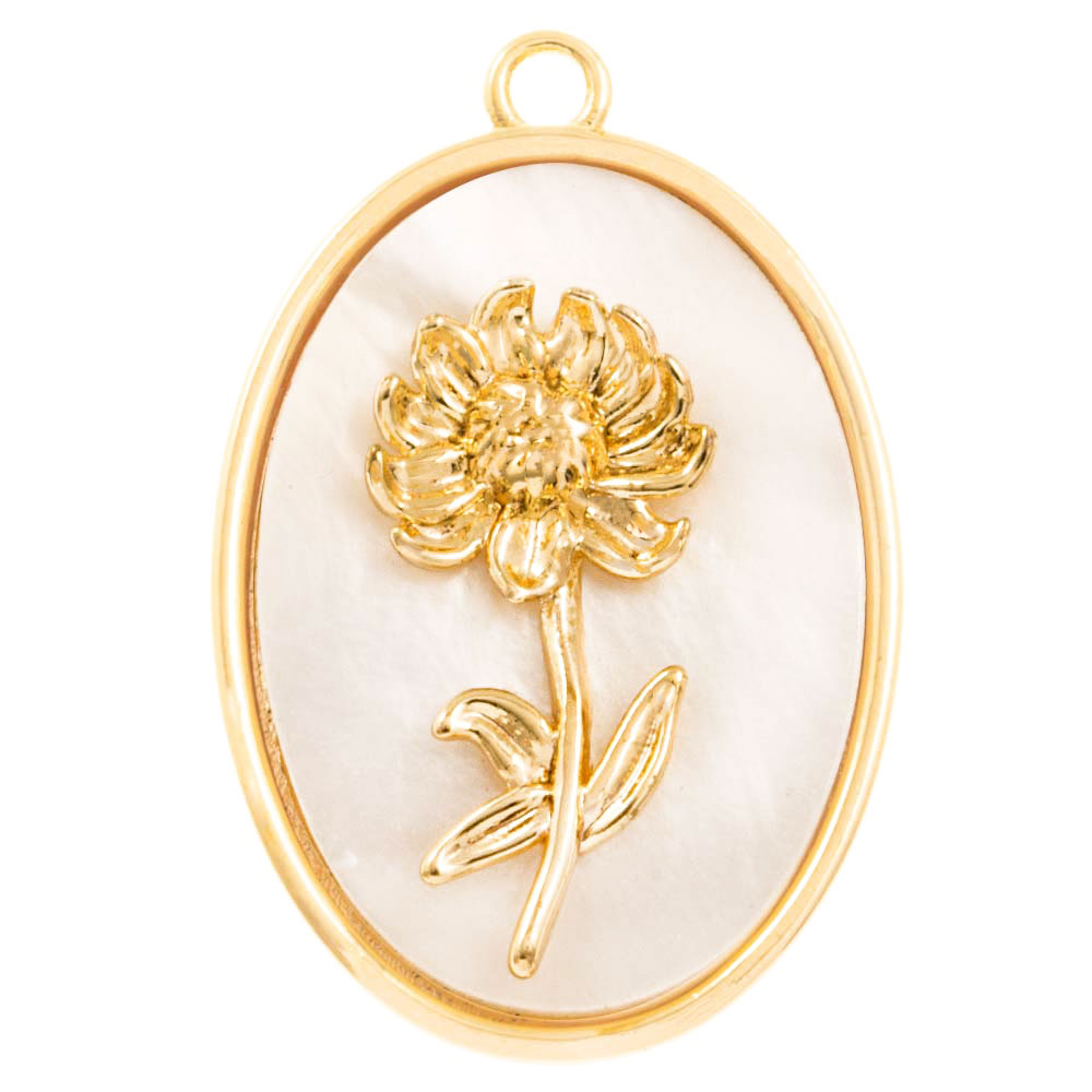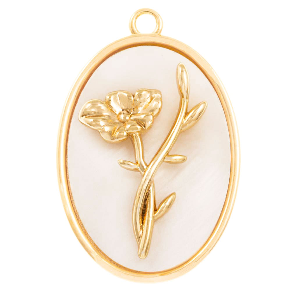 Pendentif Fleur de Naissance (Décembre / Houx) Nacre - 18K Gold Plated (27 x 18 mm) 1 pièce
