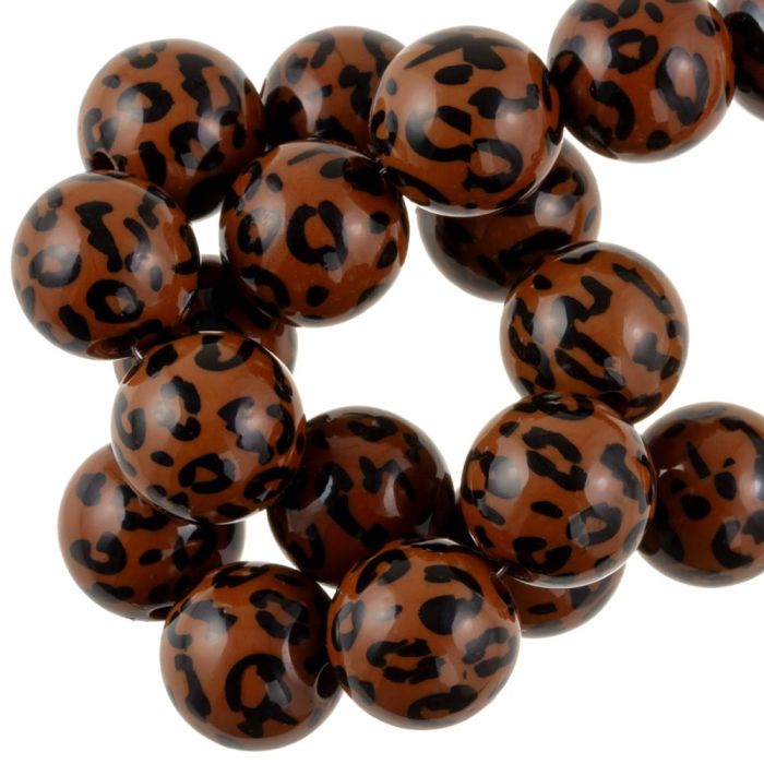 Perles Acryliques Opaque Imprimé Léopard (15 mm) Copper Brown (25 pièces)