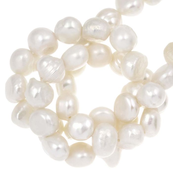 Perles d’Eau Douce (6 - 8 x 4.5 - 6 x 5 - 6.5 mm) White (26 pièces)