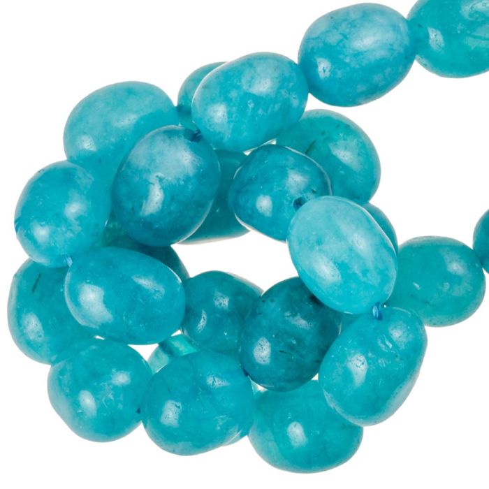 Perles de Jade Malaysia (11- 13 x 9 - 10 x 8.5 - 10 mm) Dark Turquoise (16 pièces)