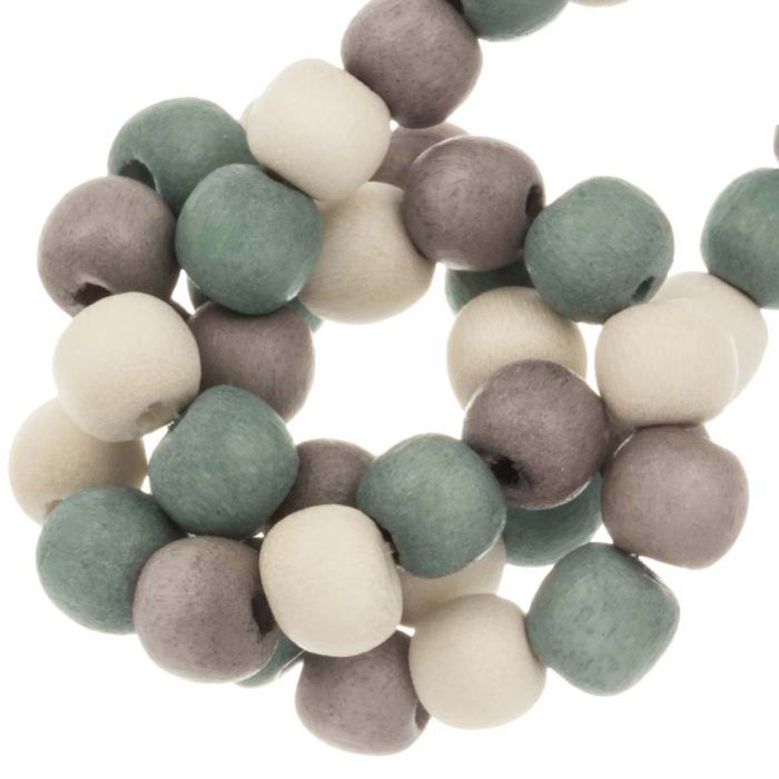 Perles en Bois (6 mm) Blue Taupe Mix (70 pièces)