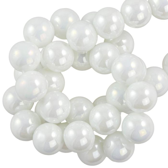 Perles en Verre Électroplaquées (10 mm) Pearl White AB (39 pièces)