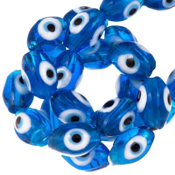 Perles en Verre Evil Eye (13 x 7 mm) Blue (30 pièces)