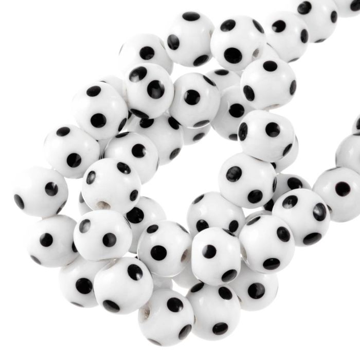 Perles en Verre Lampwork Dots (8 x 9 mm) White (25 pièces)