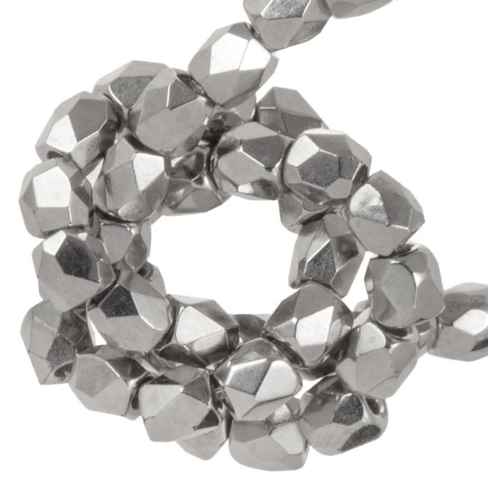 Perles Facettes Polies au Feu Tchèques (2 mm) Crystal Nickel Plated (50 pièces)