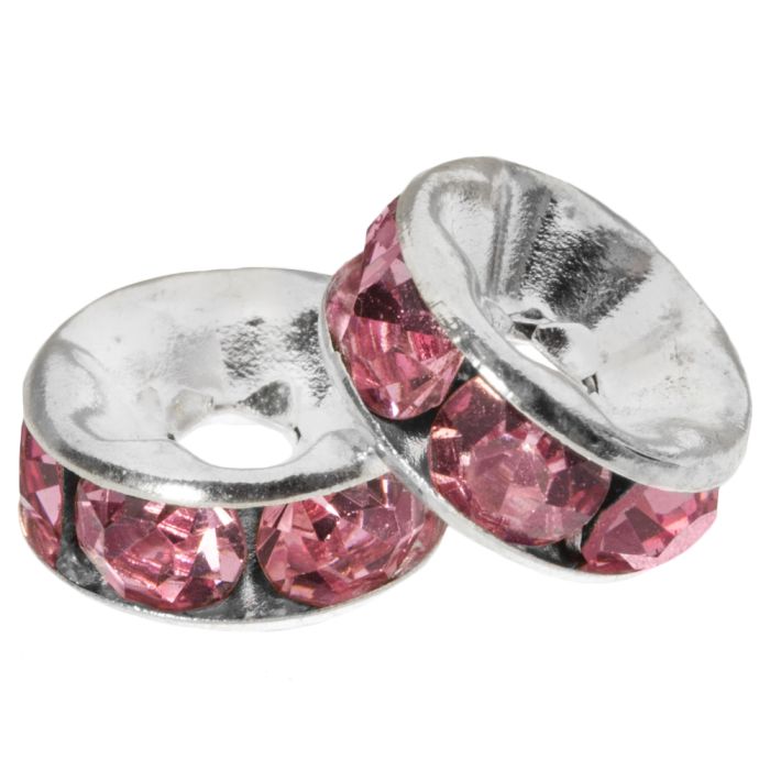 Perles Intercalaires Rondelles Strass (8 x 4 mm) Pink (10 pièces)